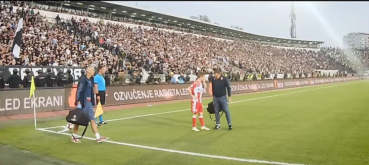 Лидер «Црвены» Марко Марин собирался подавать угловой, и с трибуны болельщиков «Партизана» прилетела петарда. Немца оглушило, судья приостановил матч. Типичное событие для белградского дерби.
