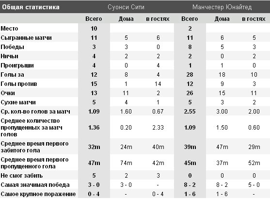 Валлийцы имеют неплохую статистику домашних матчей перед поединком с «дьяволами» Сэра Алекса. «Лебеди» не проигрывают на своём поле уже 14 игр подряд, в АПЛ они дома трижды выигрывали и дважды играли вничью. Более того, в родных стенах команда пропустила всего один(!) раз – это Данни Грэм отправил мяч в свои ворота в матче с «Болтоном». Не будет лишним добавить, что тот матч «рысаки» проиграли 1-3.