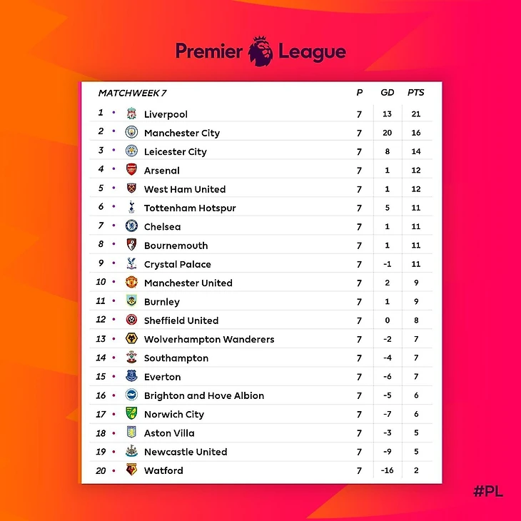 К 7 туру "шмели" подошли без единой победы, что вполне логичным образом отразилось на их положении в турнирной таблице - 19 место. В этом туре команда встречалась с "Уотфордом", который находился на самом дне, и это была идеальная ситуация для первой победы.