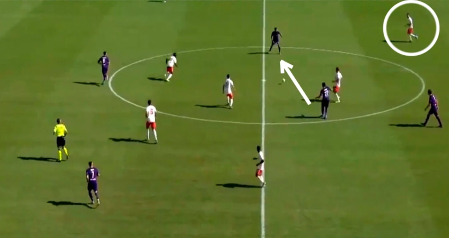 Несмотря на то, что «саррибол», по словам самого итальянца, не сразу усваивается игроками, в «Челси» такой картины не наблюдалось. В матче 2-го тура с «Арсеналом» «аристократы» выполнили 720 передач при 62 % владения. С «Ньюкаслом» и вовсе фантастические цифры: 81 % владения и 913 передач. Одной из причин такой разницы является успешность прессинга. Чем интенсивнее прессингуешь, тем быстрее возвращаешь себе мяч. Ниже фрагмент из игры с «Фиорентиной». Во время атаки «фиалок» Роналду располагается слишком высоко и не успевает закрыть правый фланг атаки соперника.