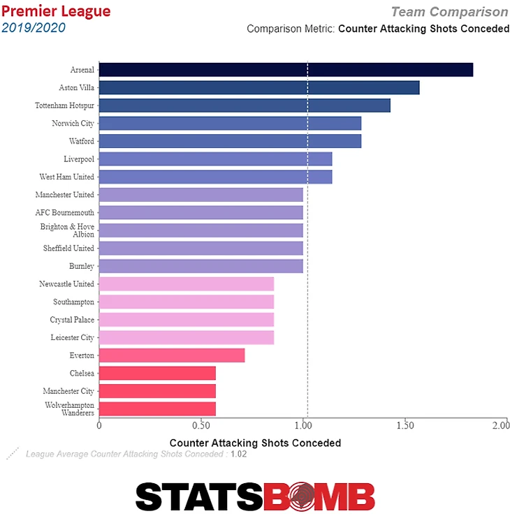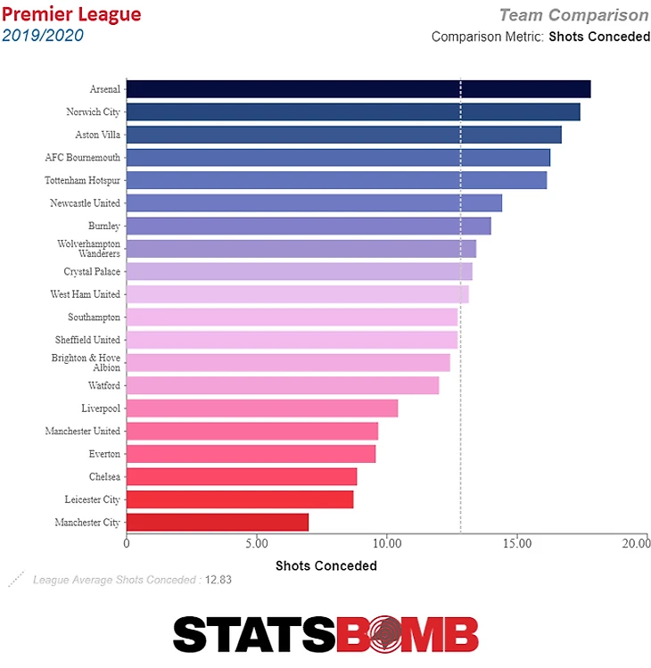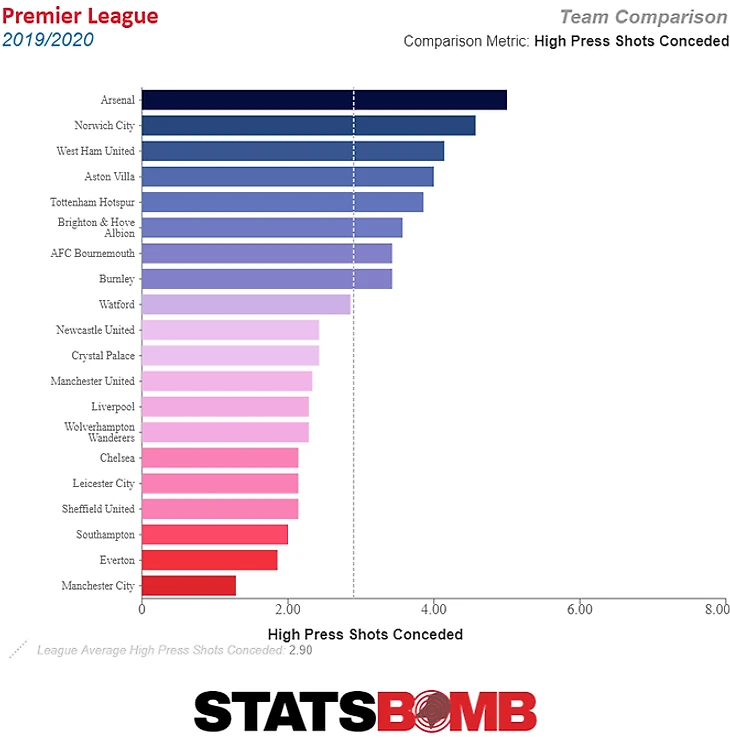 Начнем сегодня с инфографиков, посмотрим на допущенные удары по воротам: в общем, после потери при высоком прессинге соперника и после контр-атак.
