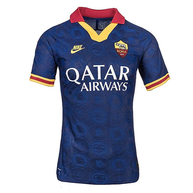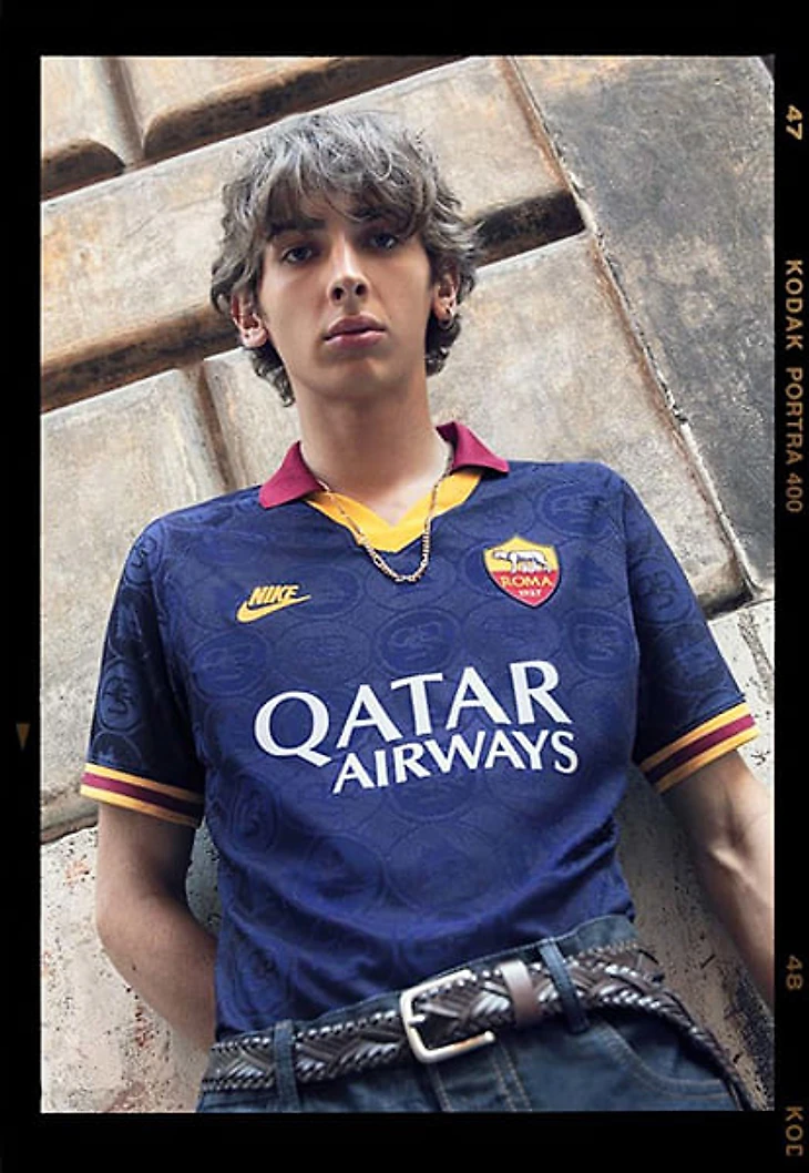 Nike хорошо поработал: третья футболка «Ромы» – синего цвета с жаккардовым паттерном из кругов, которые изображают символику прошлых логотипов клуба: ASR (1930-1934) и Lupetto (с итал. «волчонок», 1977-1997).
