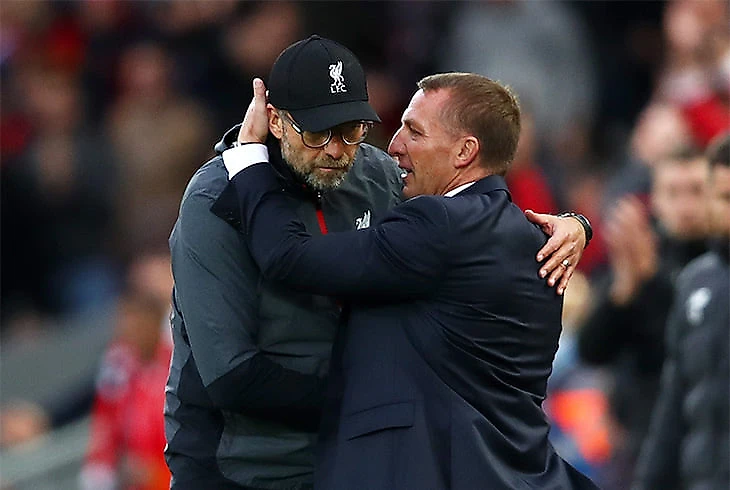 Перед стартовым свистком Брендан последним появился на кромке поля, где его уже ждал Клопп: тренеры крепко обнялись и с улыбкой перекинулись парой слов. Возможно, даже обсудили, регулярно ли Юрген платит коммуналку и вовремя ли выносит мусор: немец снимает дом в пригороде Ливерпуля именно у Роджерса (надеюсь, собственный портрет в гостиной предыдущий хозяин ему не оставил).