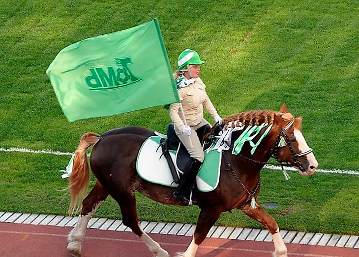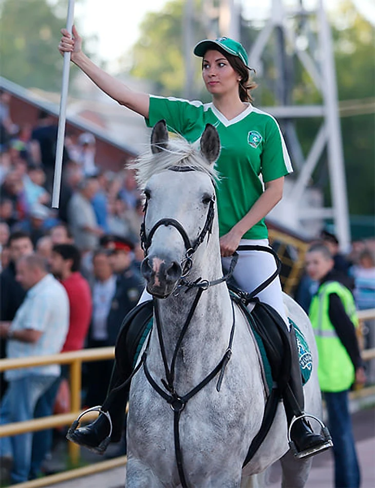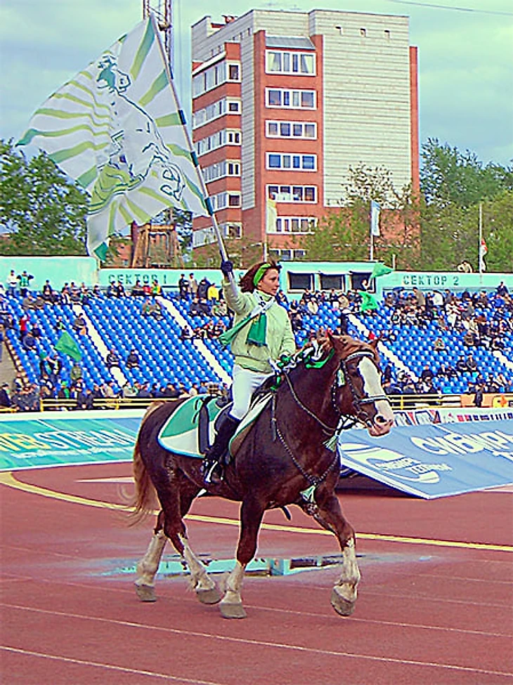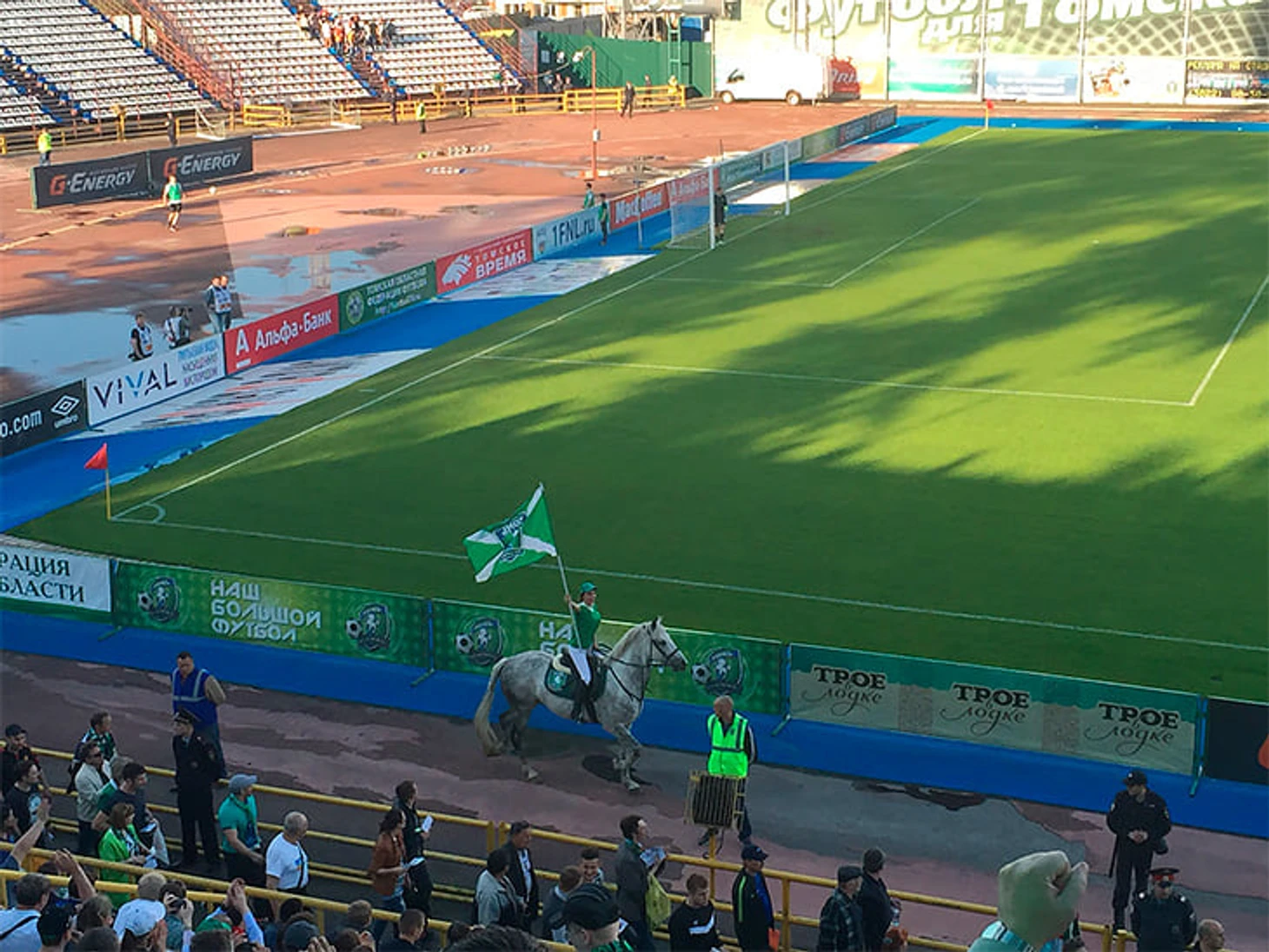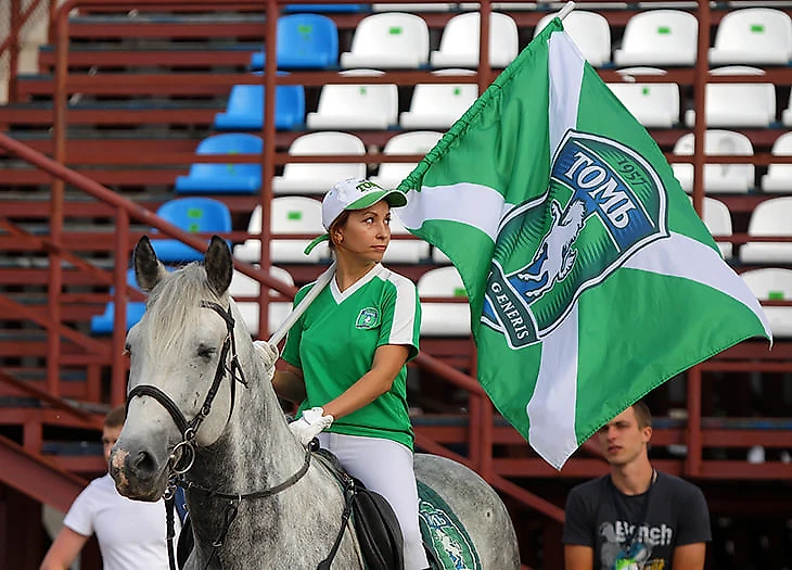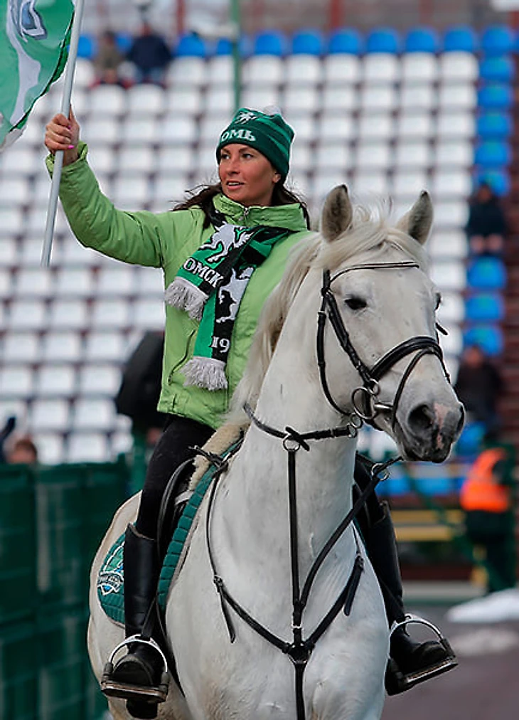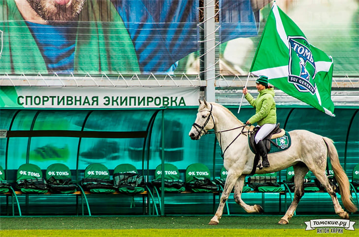 За 15 минут до каждого домашнего матча «Томи» начинается простое шоу: белоснежный конь делает круг по беговой дорожке стадиона «Труд», его наездница держит в руках зеленый флаг, болельщики аплодируют, свистят и машут руками. Все счастливы, с конем фотографируются игроки и болельщики. На других российских стадионах не встретишь ничего подобного.