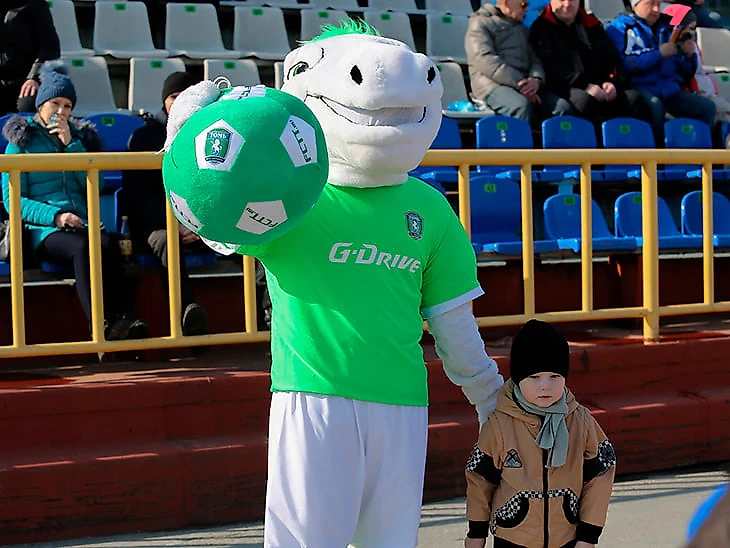 «Он был не совсем белым, как бы нам хотелось, зато брутальный коняра, нереально здоровый и мощный. Прогнали его при пустых трибунах, чтобы привык к обстановке, – понравился, договорились с ипподромом. Тот сезон был отличным, в один момент выиграли два матча на выезде, ожидали аншлаг и боялись, что коняшка испугается и начнет убегать. Стадион забился битком (тысяч 12 точно), но Лазурный к его чести повел себя по-мужски и по-сибирски: ничего не испугался, а мы уверенно обыграли лидера – астраханский «Волгарь».