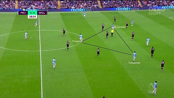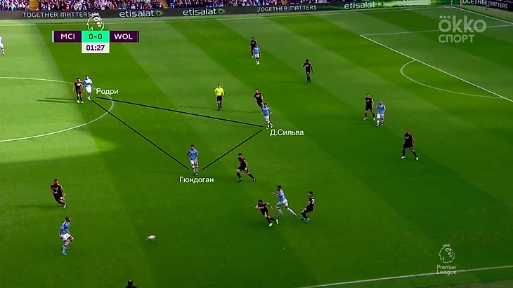 Проблему в обороне Пеп старается решить одним из своих давних вариантов - это два полузащитника в опорной зоне. Гвардиола недолюбливает эту формацию из-за проблем в продвижении мяча. При этом испанец прибегает к ней, когда нужно добавить надёжности.