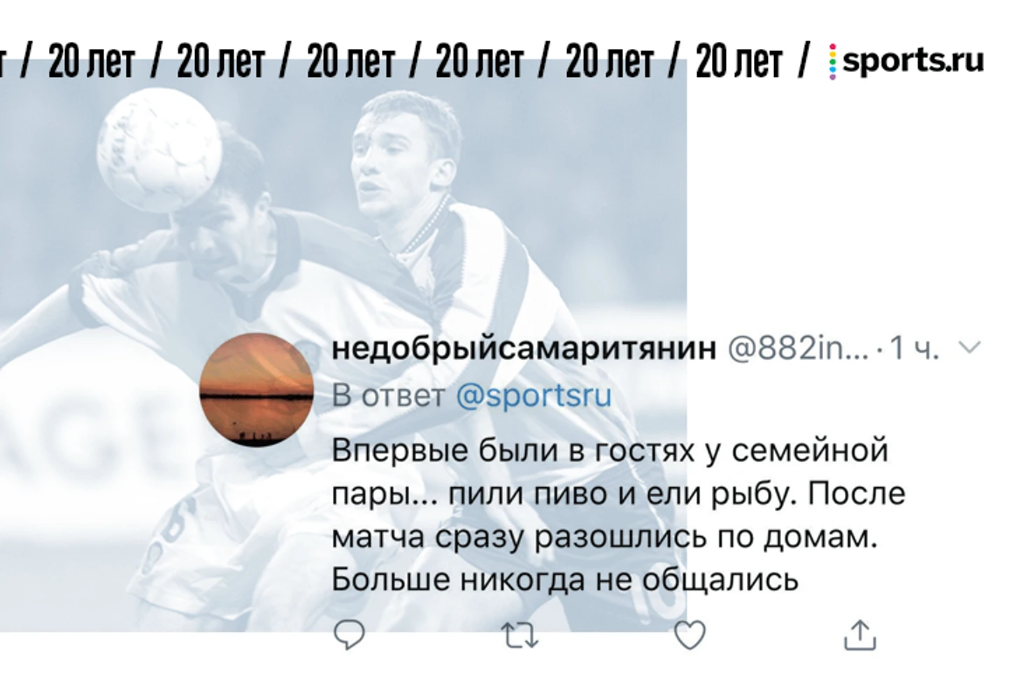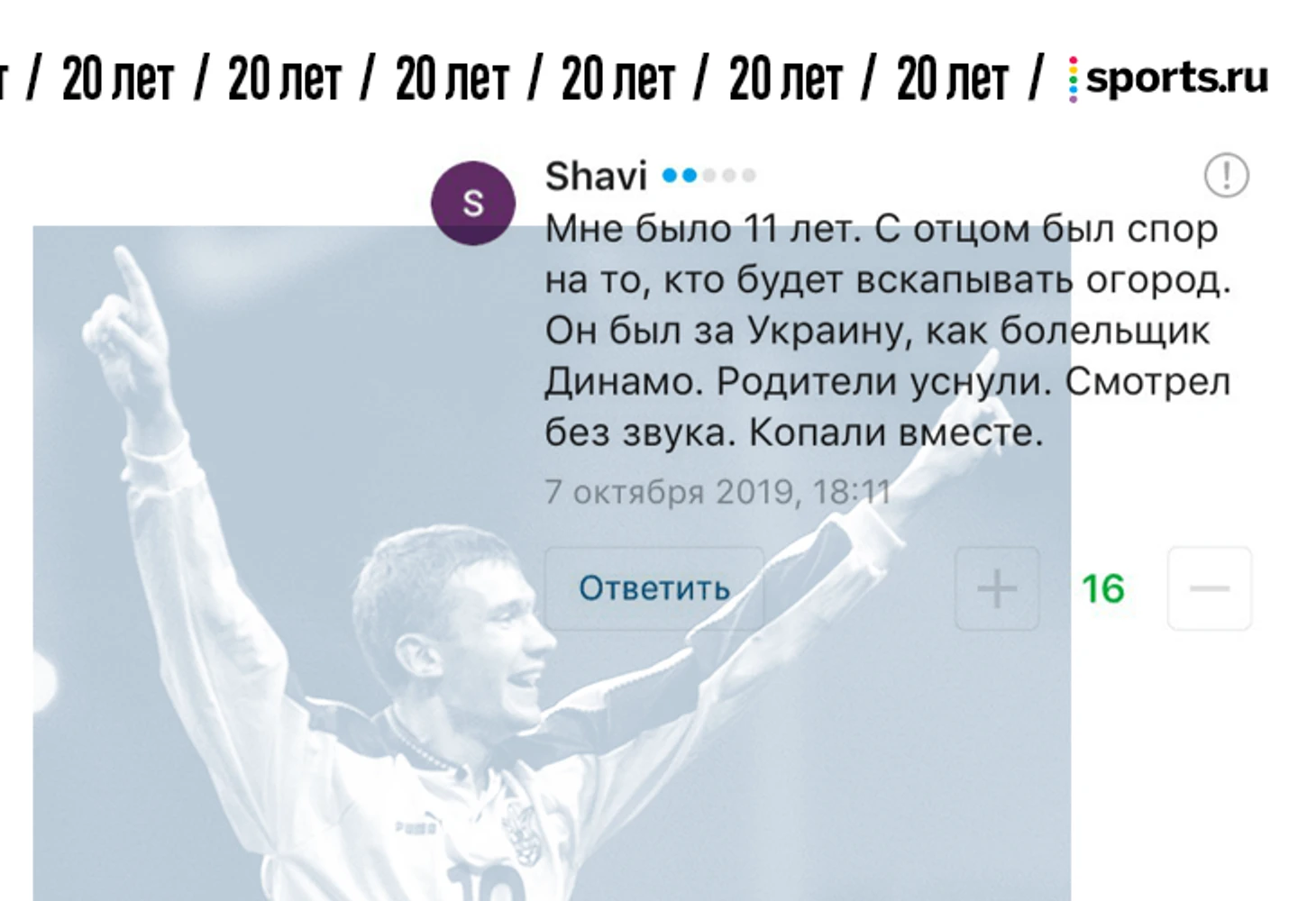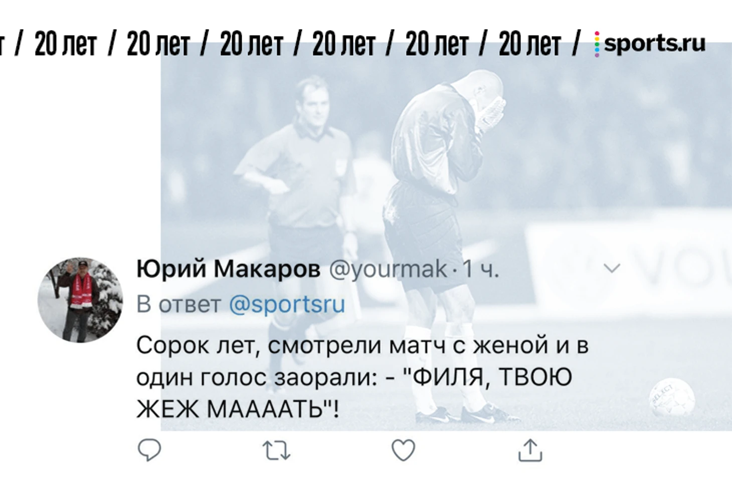 От редакции. В фотопосте про 20-летие матча России и Украины мы попросили вас поделиться самыми сильными воспоминаниями о том матче. Вы так и сделали – тот материал собрал 1357 комментариев. Мы выбрали лучшие, добавили ваши реплаи из соцсетей и оформили. Показываем.