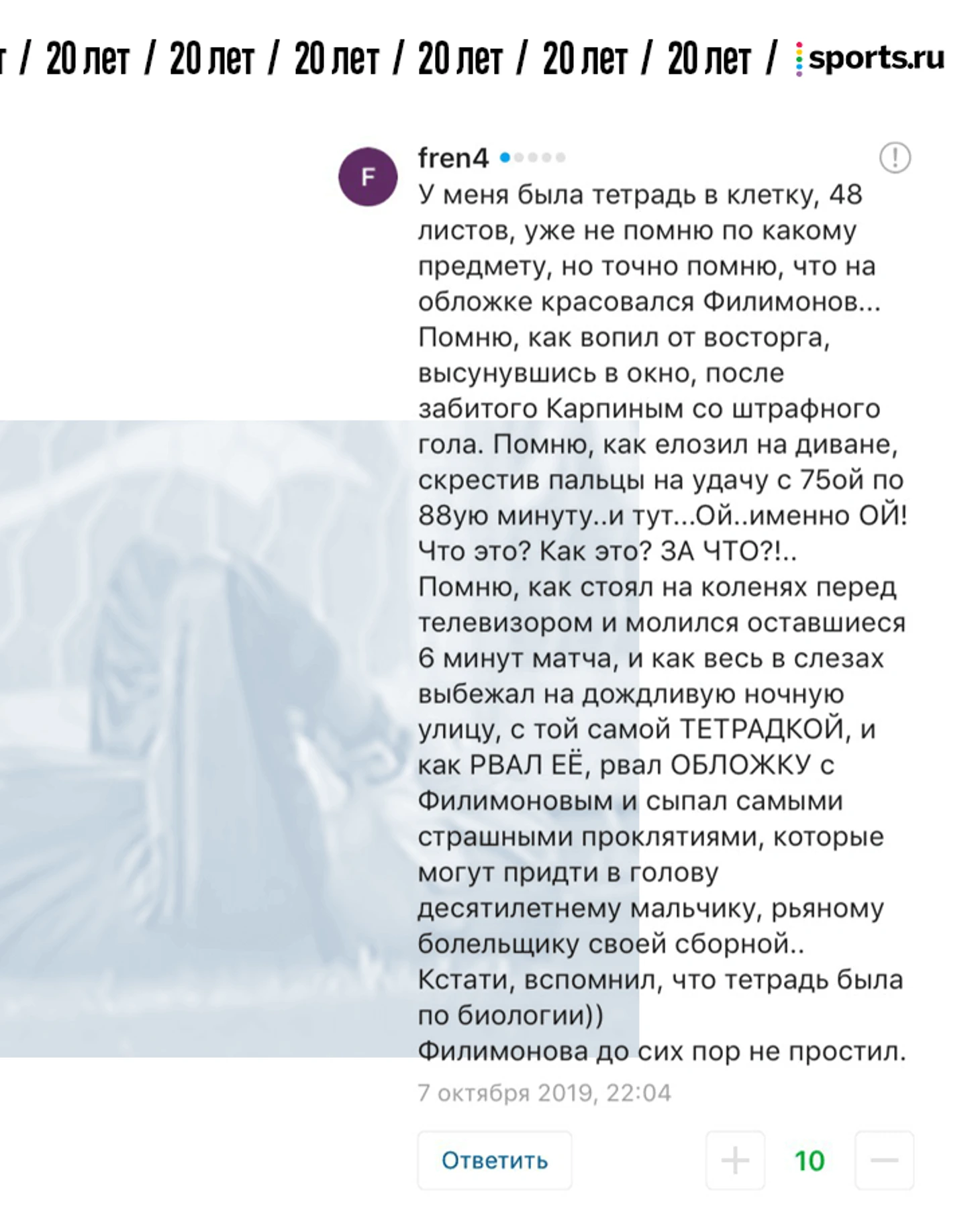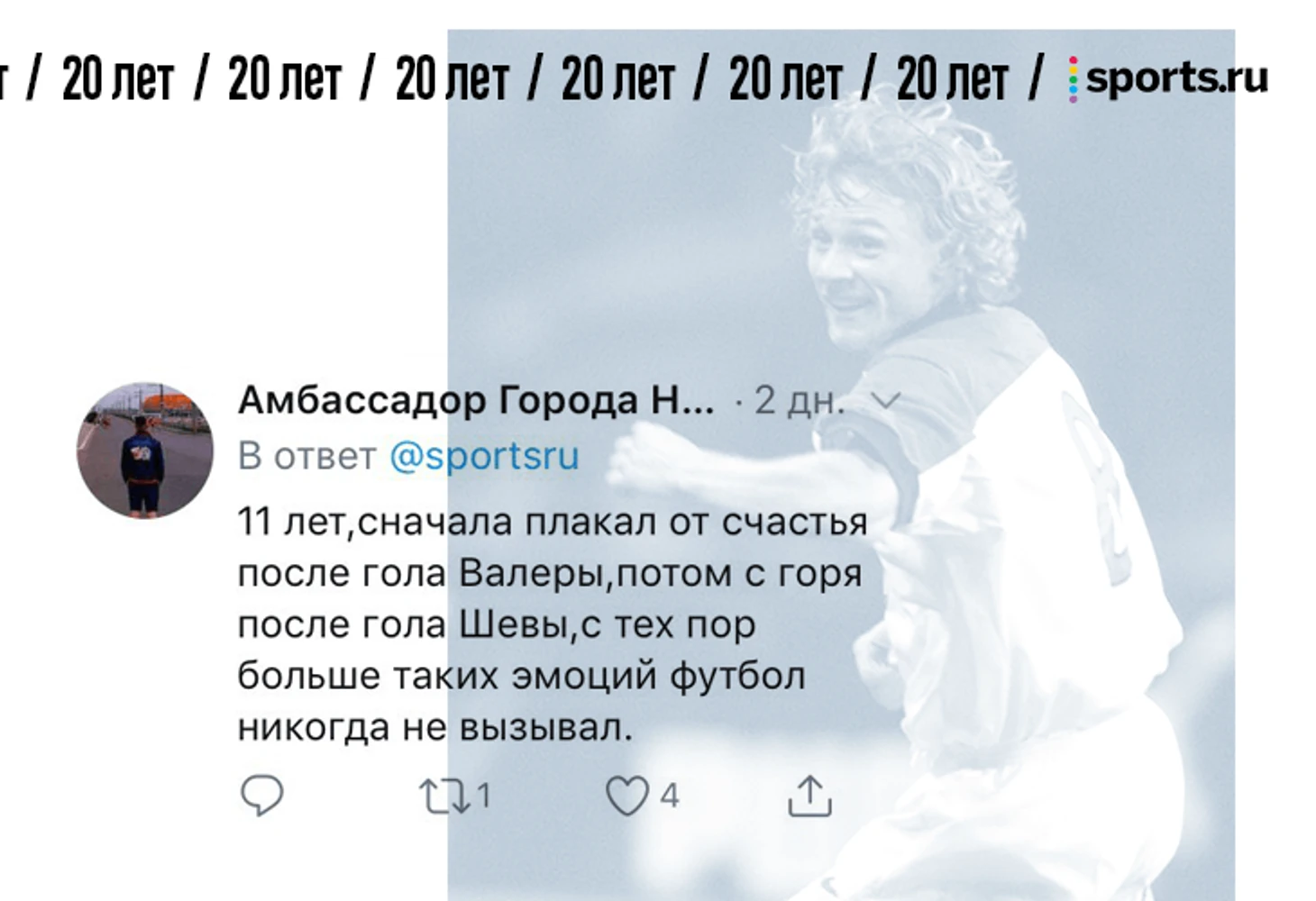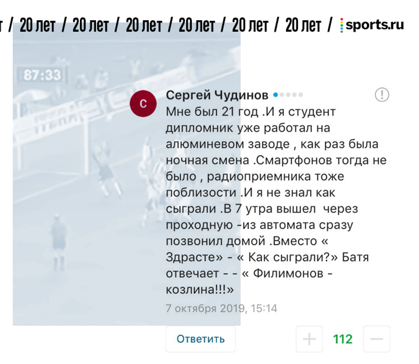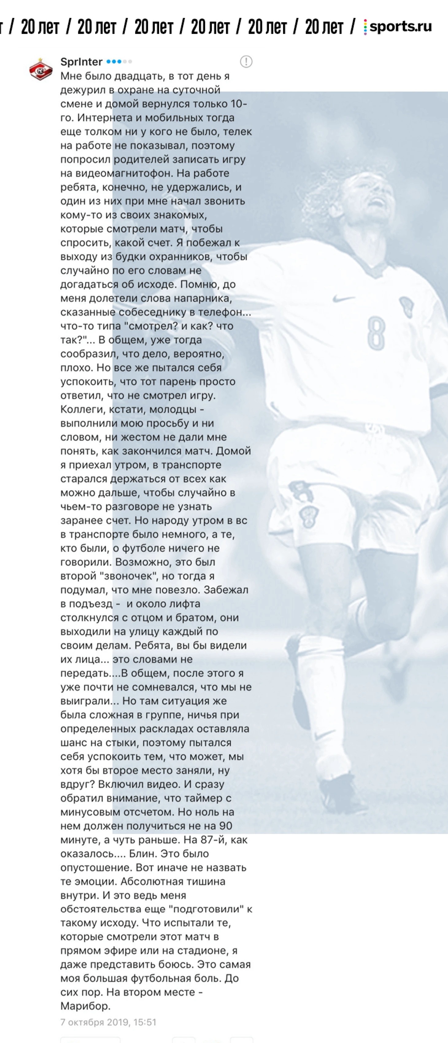 От редакции. В фотопосте про 20-летие матча России и Украины мы попросили вас поделиться самыми сильными воспоминаниями о том матче. Вы так и сделали – тот материал собрал 1357 комментариев. Мы выбрали лучшие, добавили ваши реплаи из соцсетей и оформили. Показываем.