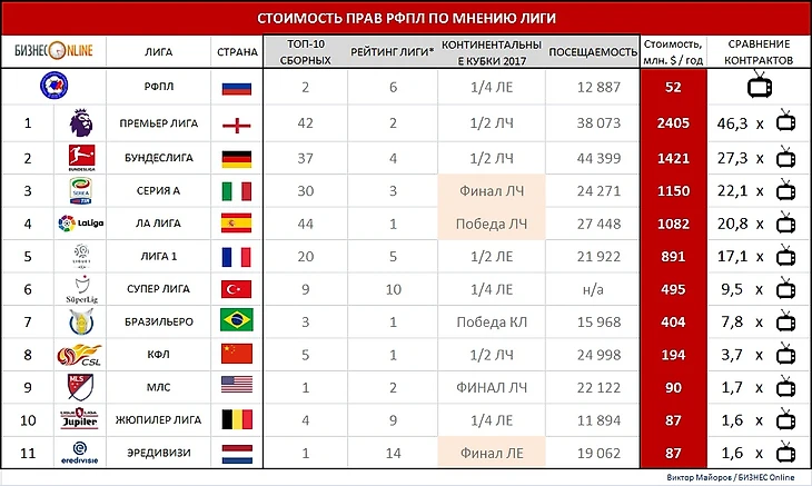 В чем главное и принципиальное отличие российской премьер-лиги от большинства европейских лиг? У нас клубы платят на содержание РПЛ и РФС, в то время как в топ-чемпионатах именно лиги (через реализацию тв-прав, например), содержат клубы. Поэтому попав в английскую премьер-лигу условный Норвич получит сотню миллионов фунтов стерлингов и может следующий год безбедно жить.