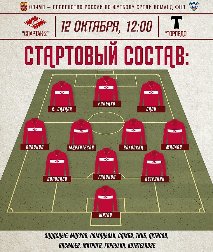 Стартовый состав спартаковцев на матч против «Торпедо»!