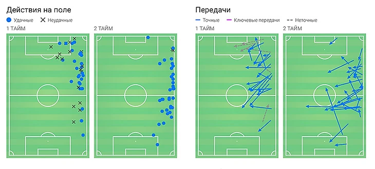 Как итог: в матче с Шотландией Фернандес выдал отличный общий объём ТТД (83, 77% удачных), сделал 60 пасов (54 точных) – показатели на уровне опорника. Но главное, сразу девять передач последовали в штрафную, и до перерыва включения Марио было лучшим, что имели в атаке. Сами можете оценить количество его действий на своей половине поля и на чужой.