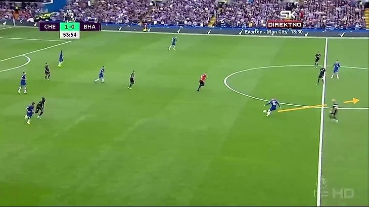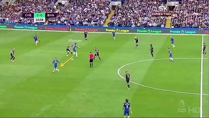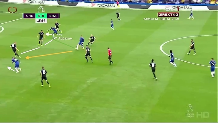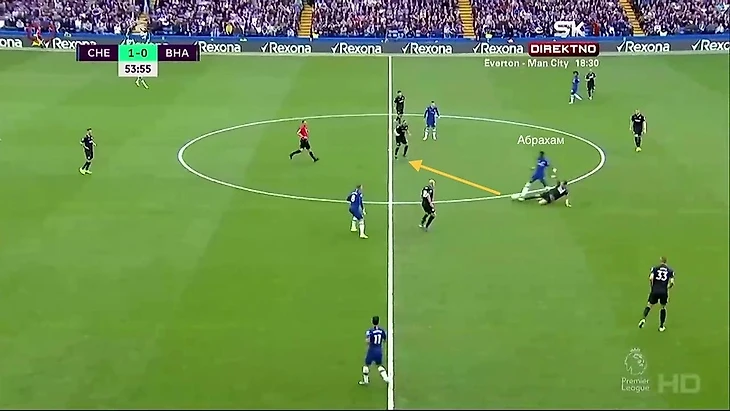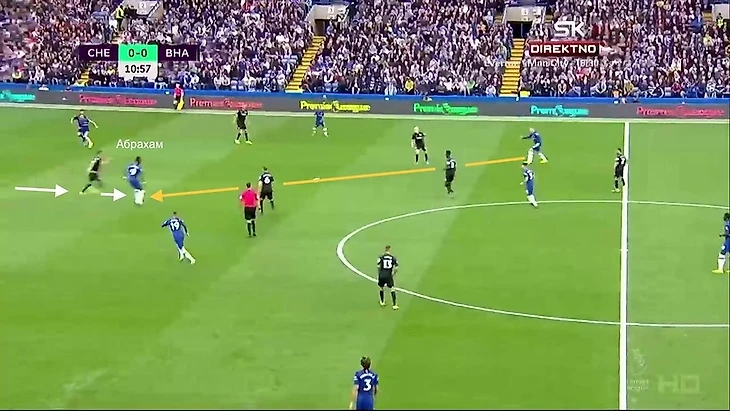 «Брайтон» чуть-чуть не выдержал ровную линию, и Абрахам уже готов это использовать. Но передача ему не пойдет.