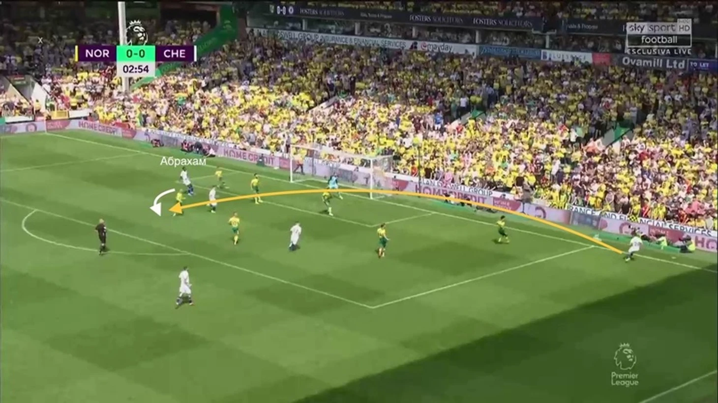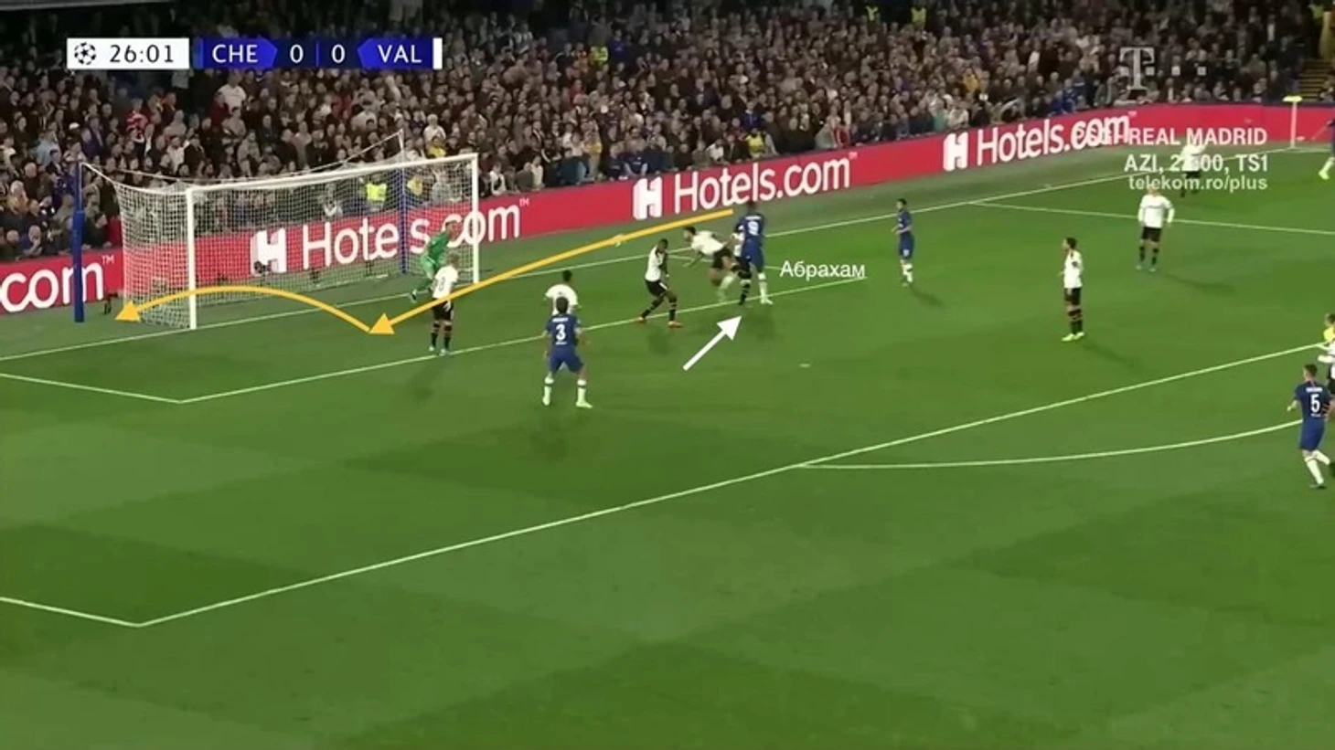 Абрахам - типичный игрок штрафной, который при этом активен в предварительных стадиях атаки. Это и делает его полезным во всех сценариях атакующей игры «Челси» — как при использовании вертикальных передачах, так и при использовании кроссов. К слову, пока что «Челси» чаще прибегает к навесам. На самом деле «Челси» зависим от кроссов даже сильнее, чем нужно: