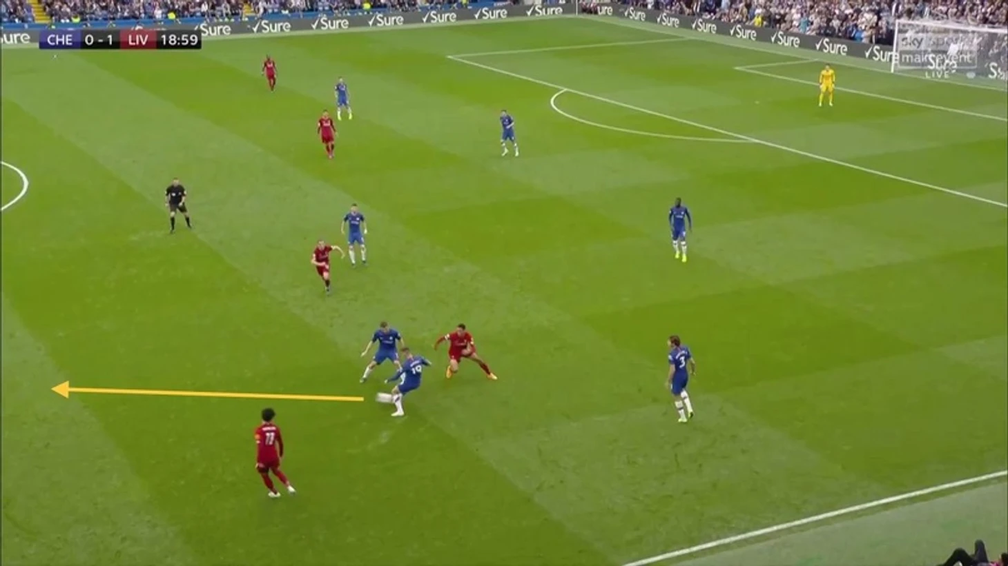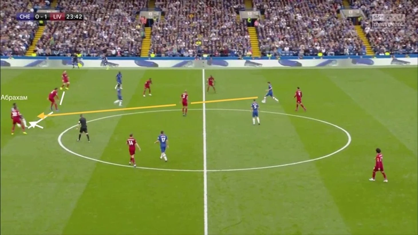 Пример — Трент Александер-Арнольд плотно сыграл с Тэмми, Абрахам коряво обработал мяч, и «Ливерпуль» легко задушил соперника с помощью контрпрессинга: