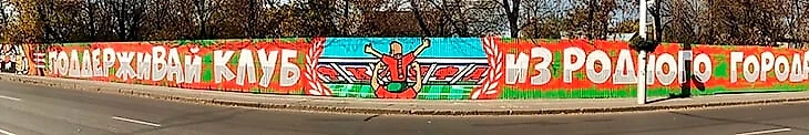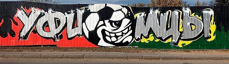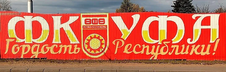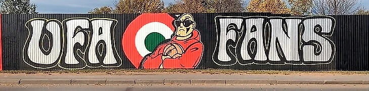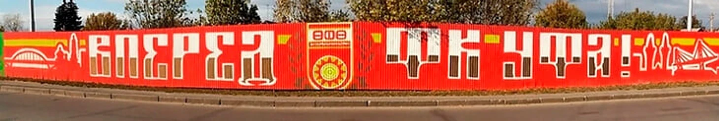 Болельщики «Уфы» поддержали команду с помощью искусства. Они раскрасили забор вдоль дороги, которая ведет к стадиону «Нефтяник».