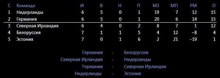 Аутсайдеры дружно проиграют свои гостевые матчи фаворитам. Расклад в группе решится в матчах с участием Сев.Ирландии. Представляется, что эта сборная наберет в них не больше 1 очка. Все-таки соперники очень серьезные.