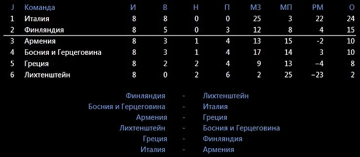 Италия вполне может взять 28 или 30 очков в отборе. Финляндия оформит дома исторический выход на Евро. Даже невероятные две победы Армении или Боснии ничего не решат.