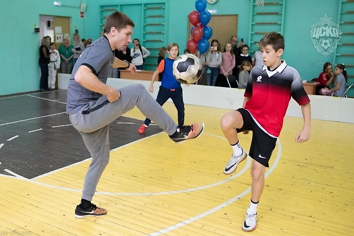 В мероприятии приняли участие футболисты ЦСКА Кирилл Набабкин и Алан Дзагоев. В начале встречи школьники задали игрокам армейского клуба ряд вопросов, а затем они вместе поиграли в футбол. Алан и Кирилл выступали за разные команды. Несколько товарищеских матчей не выявили победителя: каждый одержал по одной победе, и еще трижды была зафиксирована ничья. Затем состоялся челлендж, главной задачей которого было попасть со своей половины поля в ворота соперника мячом так, чтобы он залетел верхом и коснулся сетки. Сильнее оказался Набабкин — 2:1.