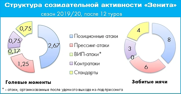 Обе команды равноопасны в переходных фазах (по 9 забитых мячей в контратаках и прессинг-атаках), да и в позиционной статике создают не так мало (хотя с «автобусами» вроде «Уфы» мучаются и те, и другие).