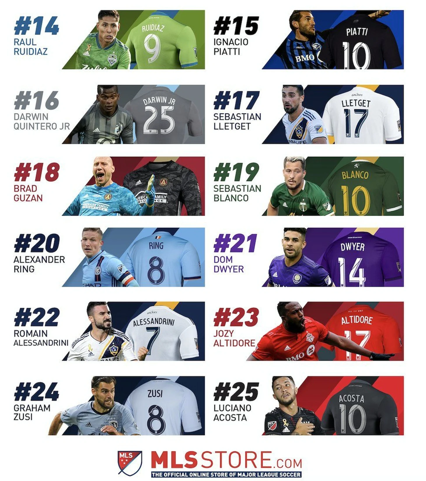 • Всего в топ-25 попали представители 15 из 24 клубов. Чаще всего в список попадали игроки «Сиэттла». Любопытно, но всего 8 футболистов из топа популярности играют за сборную США.
