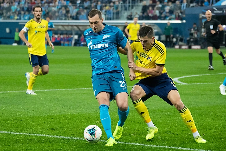 С первых минут "Зенит" показал, кто тут хозяин и чья это игра. Сине-бело-голубые разбивали прессинг ростовчан передачами с фланга на фланг. И вот уже на 14-ой минуте зенитовцы открыли счёт: пенальти в ворота соперников забил Артём Дзюба.