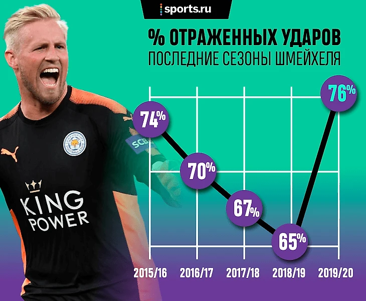 Еще более показательно сравнение с прошлыми сезонами самого Шмейхеля. Даже по пути к чемпионству он не выручал так часто – в последние годы и вовсе был явный спад: