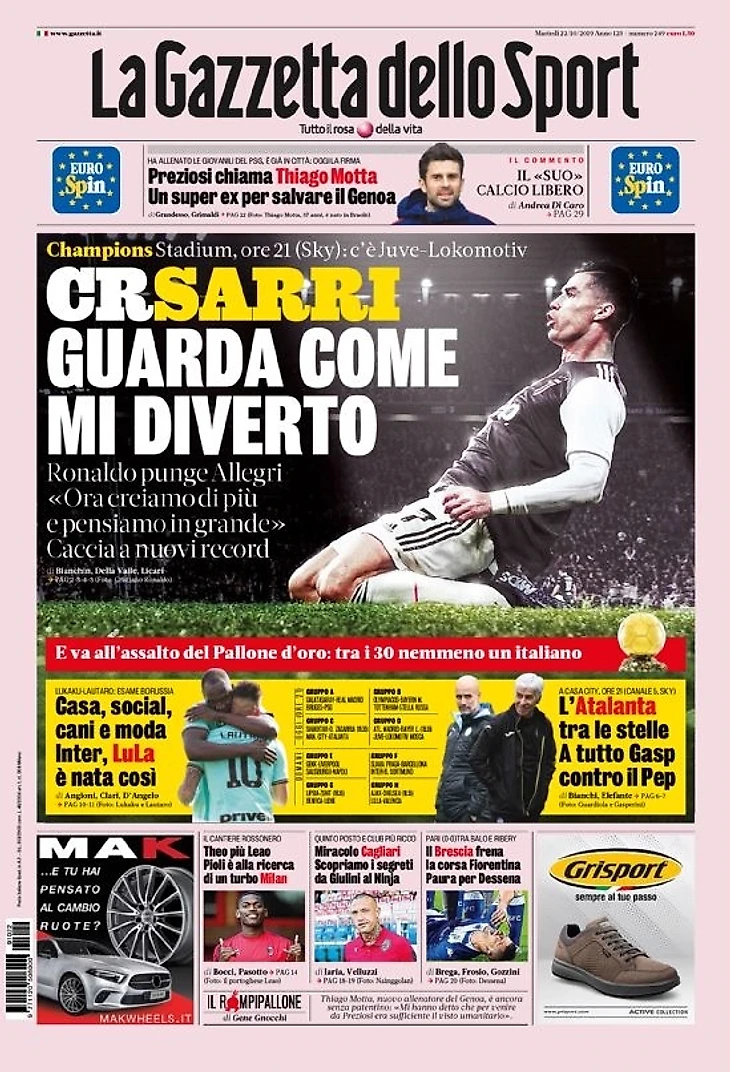 CRСарри, посмотри как мне нравится. Заголовки Gazzetta, TuttoSport и Corriere за 22 октября