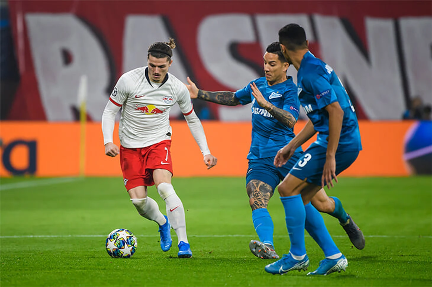 «Лейпциг» давил на левый фланг «Зенита» – все неприятности первого тайма пришли из-под Дугласа Сантоса