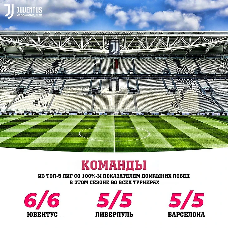 Туринский «Ювентус» во всех турнирах не проиграл дома ни одного из 6-ти матчей. Обошли «Ливерпуль» и «Барсу» по этому показателю