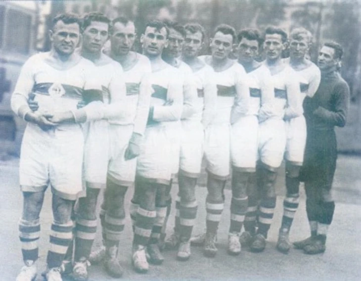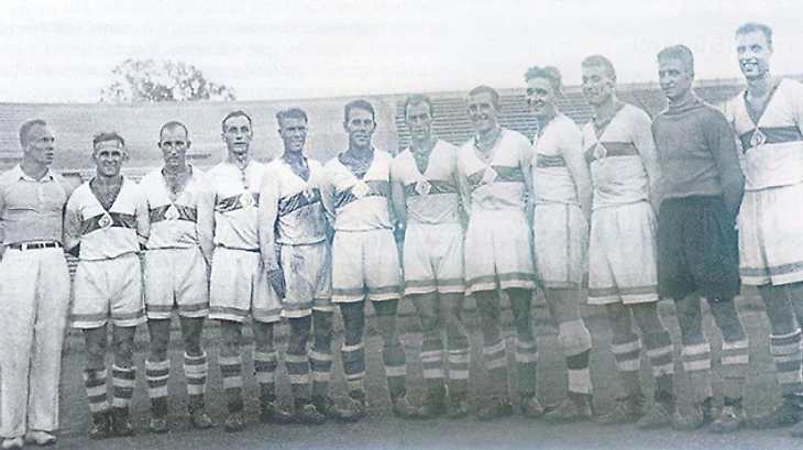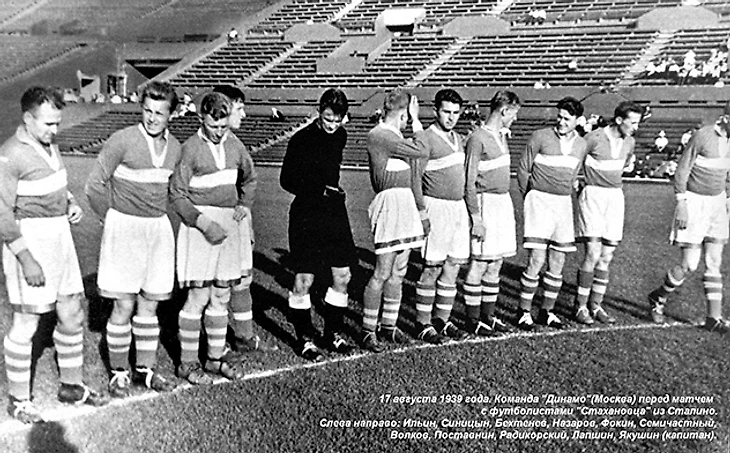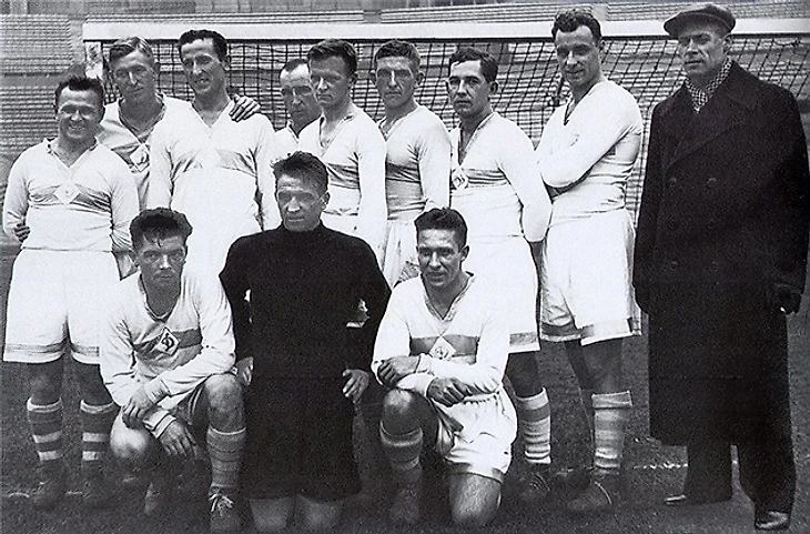 Чемпионское «Динамо» 1935 г. На снимке: С.Ильин (капитан), А.Ремин, В.Смирнов, П.Коротков, В.Тетерин, В.Павлов, С.Иванов, Л.Корчебоков, А.Лапшин, М.Якушин, Е.Фокин.