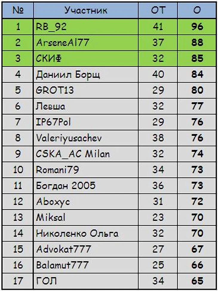 Вадим RB_92 - единоличный лидер общего зачета. У Вадима солидный отрыв (+8 очков) после трех туров. Кто бросит ему вызов?