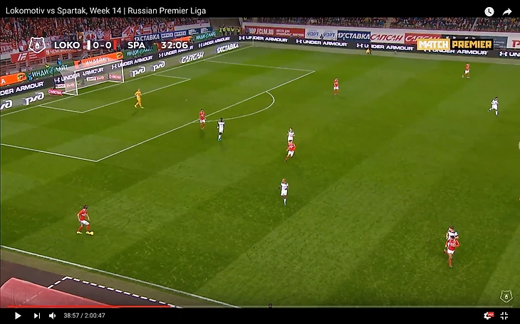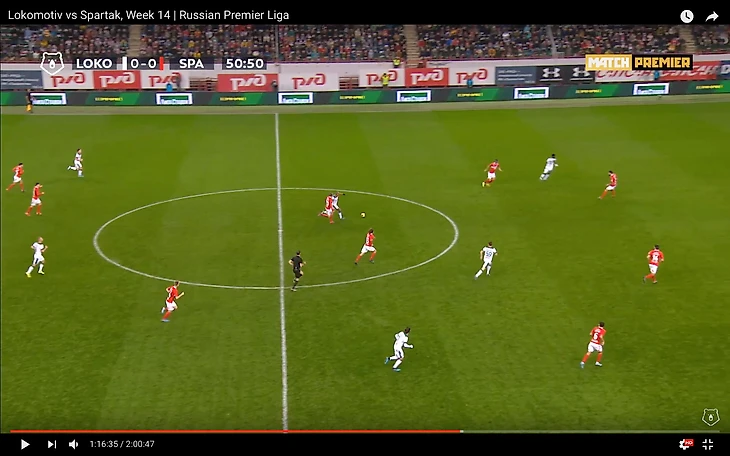 Второй тайм, позиционная атака "Локомотива". Та же история, опять тройка Кутепов - Жиго - Джикия в центре, Мельгарехо и Айртон по краям: