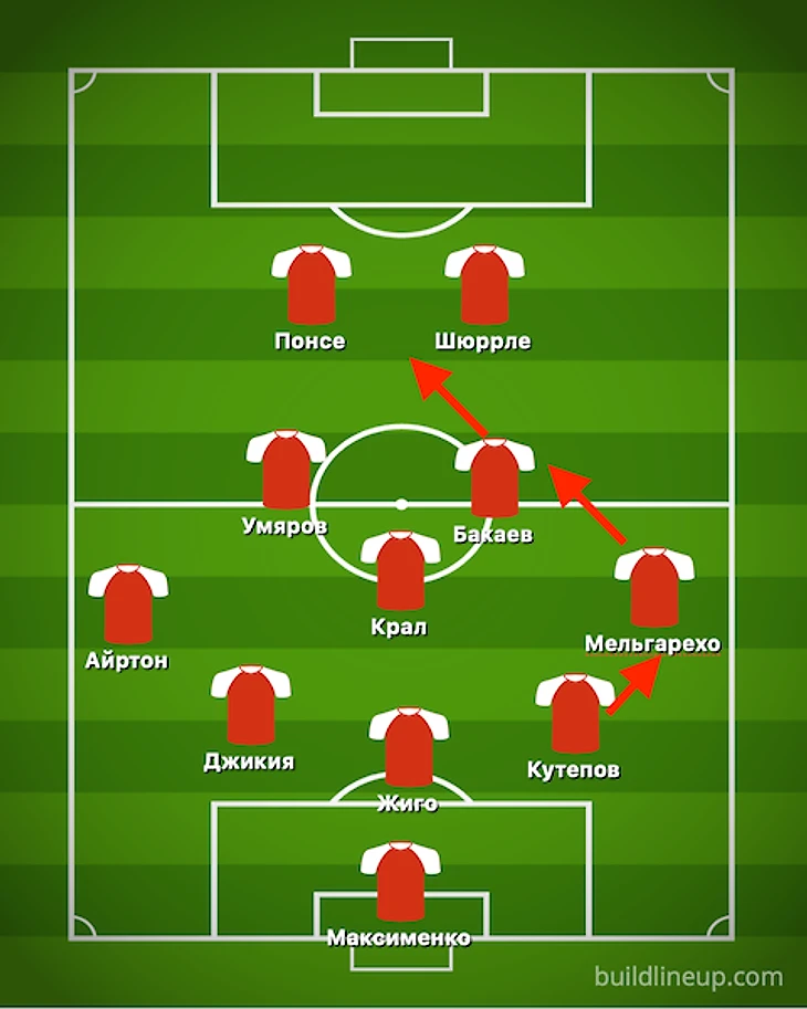 Хотя Тедеско в "Спартаке" меньше двух недель, такая схема - это полностью его задумка. При Кононове не было трех центральных защитников, он не использовал ромб в полузащите, и уж тем более он не использовал "гибридные" схемы, при которых расстановка игроков постоянно меняется в зависимости от фазы игры. Повторюсь, понятно, что команда Тедеско только строится, но то, насколько команда уверенно и спокойно перестраивалась с одной расстановки на другую и обратно, очень радует.