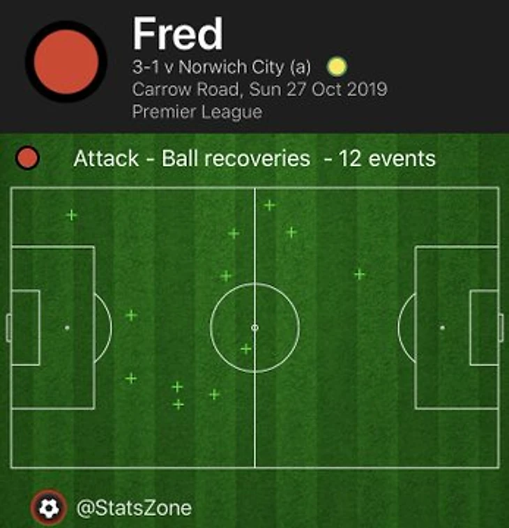 Фред в матче с «Норвичем» вернул мяч команде больше, чем любой другой игрок