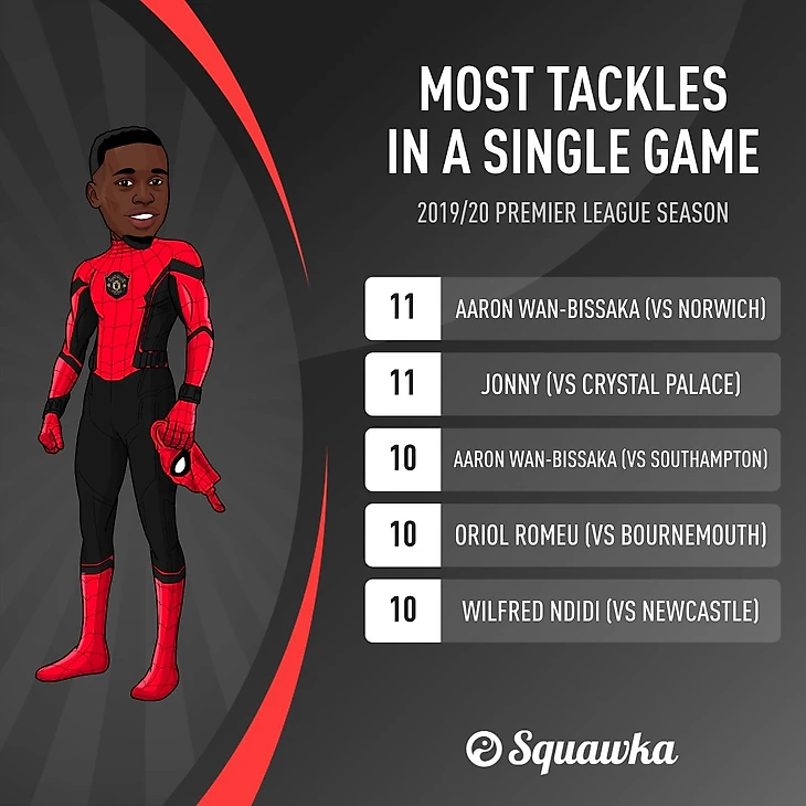 Аарон Уан-Биссака - единственный игрок, который в этом сезоне АПЛ дважды установил рекорд по количеству успешных отборов за матч:11 - против «Норвича»10 - против «Саутгемптона»