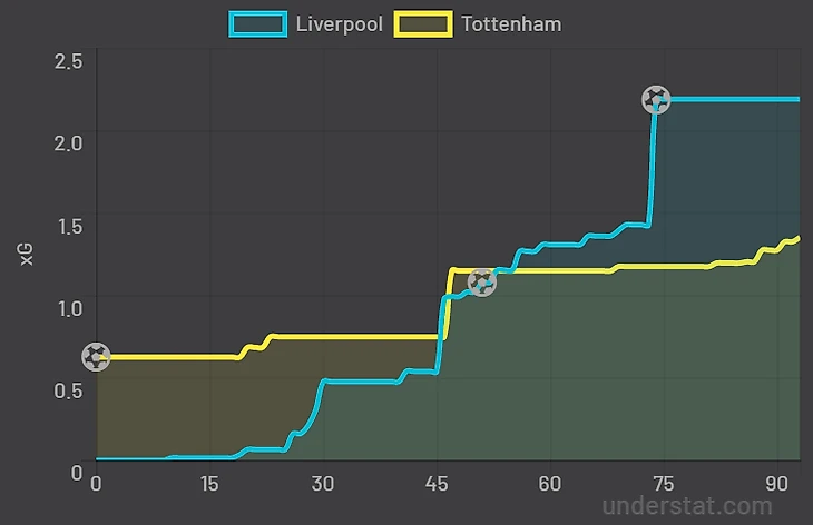Счет на табло полностью справедлив, о чем говорит показатель xG. Вся острота атак Тоттенхэма – это непосредственно гол и штанга после удара Сона. Пожалуй, этого маловато, чтобы выиграть матч.