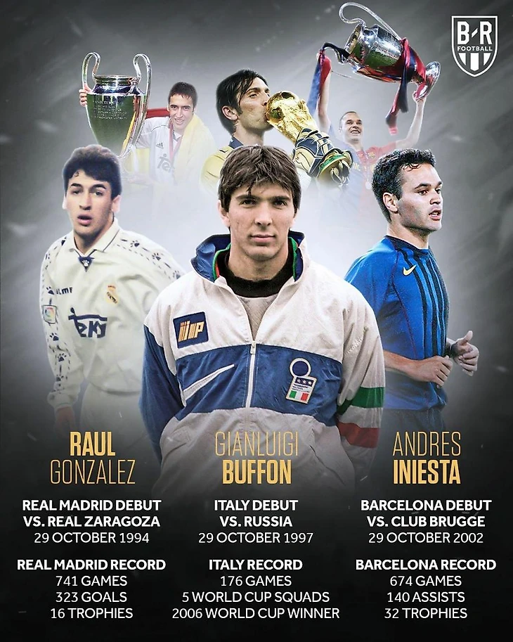 В этот день свой большой футбольный путь начали: Рауль, Буффон и Иньеста.