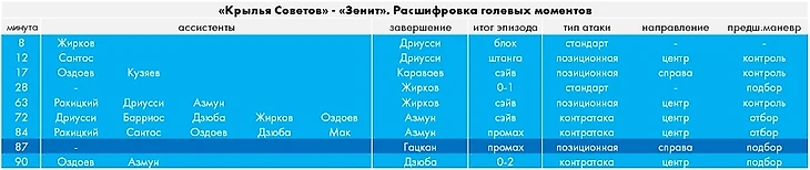 Три явных голевых шанса в быстрых атаках после овладеваний на своей половине за последние 20 минут – текущий рекорд нынешнего сезона и повторение рекорда прошлогоднего, который по загадочному стечению обстоятельств пришелся на апрельский поединок с теми же «Крыльями».