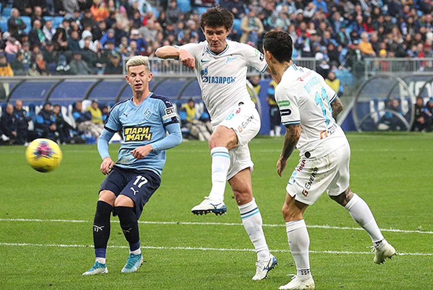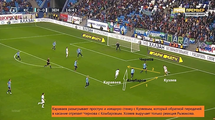 После планового выхода Дзюбы в середине второго тайма «Зенит» переконфигурировался в более традиционный формат с опорной связкой Оздоев-Барриос и Сантосом слева в защите, но Жирков в непривычной роли правого вингера все же придавал некую пикантность ситуации. Это позволяло гостям сделать атаки более вертикальными и разыграть свой контратакующий козырь.