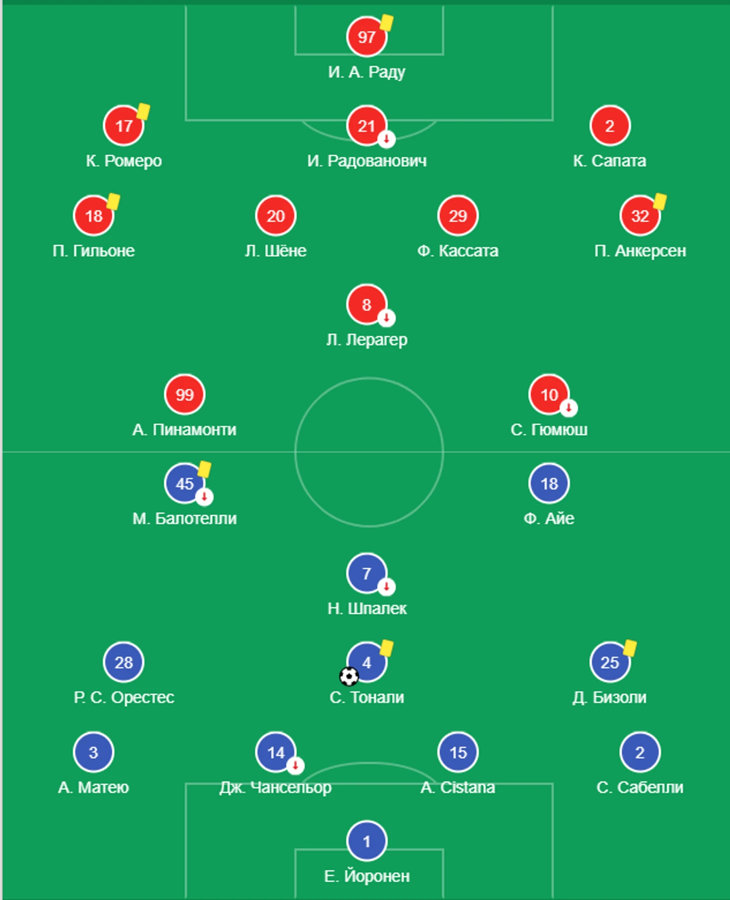 После великолепного гола Тонали в первом тайме, красно-синим удалось перестроиться и одержать волевую победу с помощью голов Агудело, Куаме и Пандева.