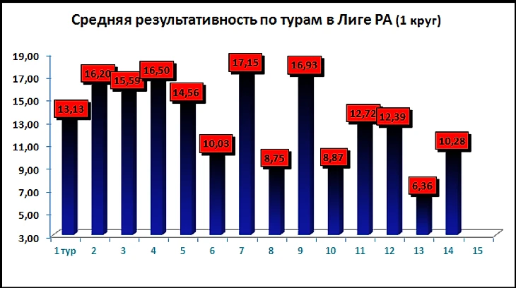 Средняя результативность 14 тура в Лиге РА - 10,3 очка на игрока