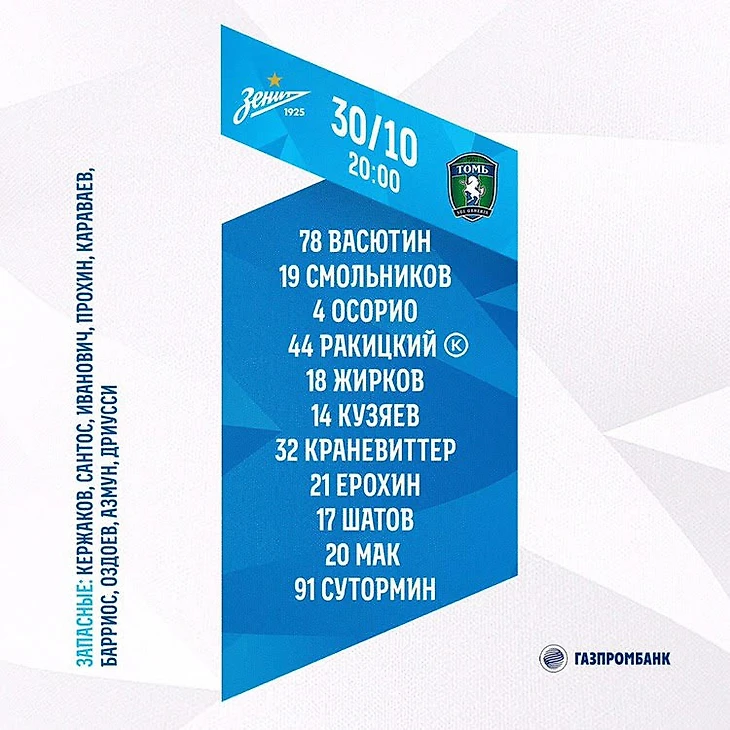 В первом тайме акцент был сделан на рывки и забегание за спину Игорем Смольниковым. На счету гол и пара острых прострелов в штрафную. На другом фланге было куда спокойнее,но пара опасных моментов так же были: срезка и попадание в перекладину. Будь Зенит быстрее и в качестве завершения, счёт мог быть крупнее. Но по факту интрига умерла уже после первого года в ворота Томи. Даже если бы Васютин не совершил сейф в стиле Нойера, думаю вопросов в победе все равно не было. Томск ничего не смог противопоставить Зениту. Хозяева отдали инициативу в конце первого тайма, но создать гости ничего не смогли.