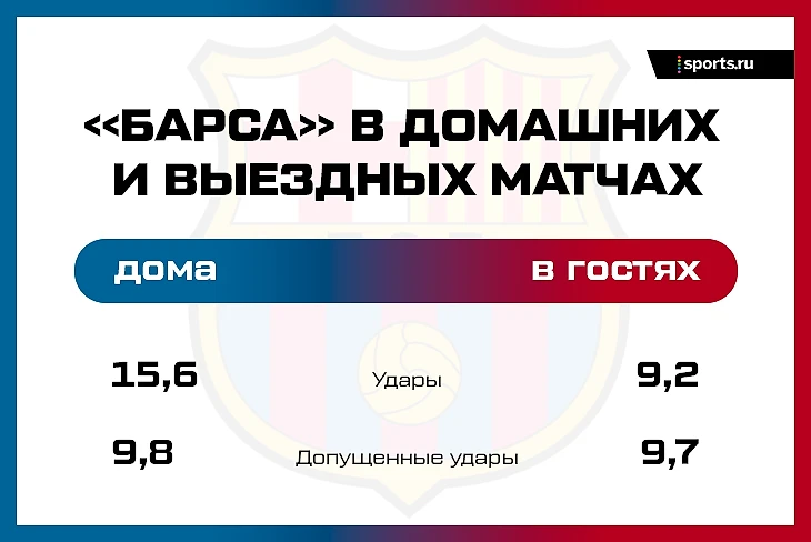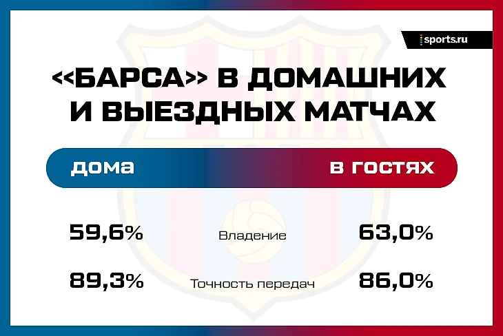 Вооружимся статистикой и нарисуем портреты домашнего и выездного матча «Барсы». Такой подход работает не всегда. Иногда речь о слишком разных матчах, а в цифрах просто отображается средняя температура по больнице. Но с нынешней «Барсой» подход применим: те, кто регулярно смотрят команду, знают, что в этом сезоне матчи дома очень похожи друг на друга. У выездов тоже много общих характеристик. Это же проявляется и цифрах.