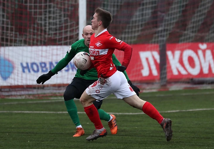 Работы у Шитова в этом матче практически не было. С первых минут «Спартак-2» прижал «Мордовию» к воротам. Моменты были у всех игроков группы атаки — и у Глушенкова, и у Нимели, и у Руденко, и у Бакаева. Однако забить долгое время не удавалось. Ход матча напомнил недавнюю кубковую встречу «Спартака» и «Ростова», когда красно-белым также пришлось вскрывать плотную оборону соперника. И все же ближе к концу тайма «Спартаку-2» удалось вскрыть мордовский «автобус». Бакалюк прочитал передачу соперника при выходе из обороны и сразу же вывел к воротам Глушенкова, который уверенно переиграл голкипера. 1:0!