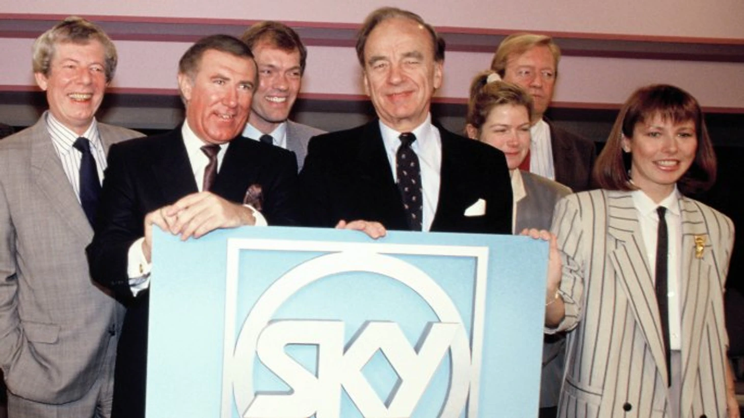 Руперт Мердок (в центре) отмечает запуск Sky в Великобритании в 1989 году