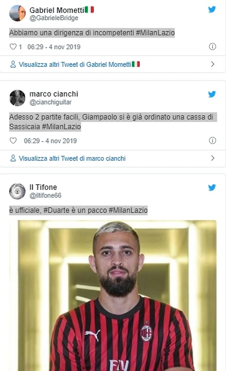 Il Tifone: Официально: #Дуарте - ### (прим. "pacco" с итал. сленга - мужской половой орган) #МиланЛацио