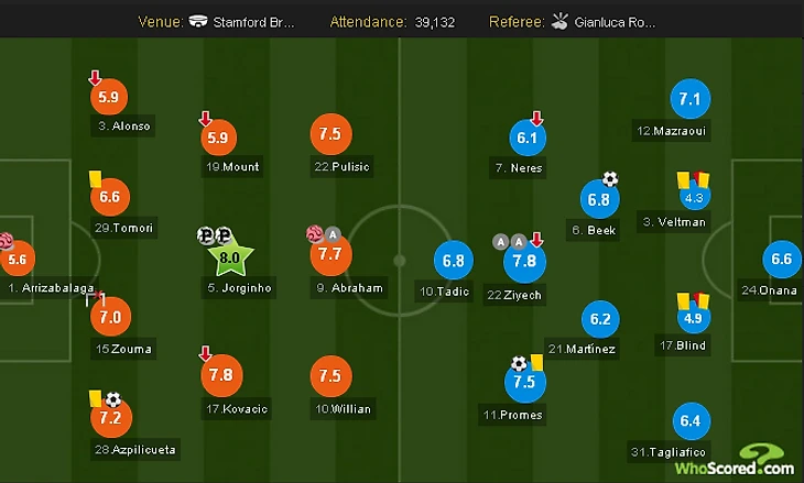 Насчёт того что Аякс весь матч доминировал согласен, кроме Джеймса в Челси отметить некого. Даже у Пулишича столько брака в передачах было, непонятно что стало со всем составом.