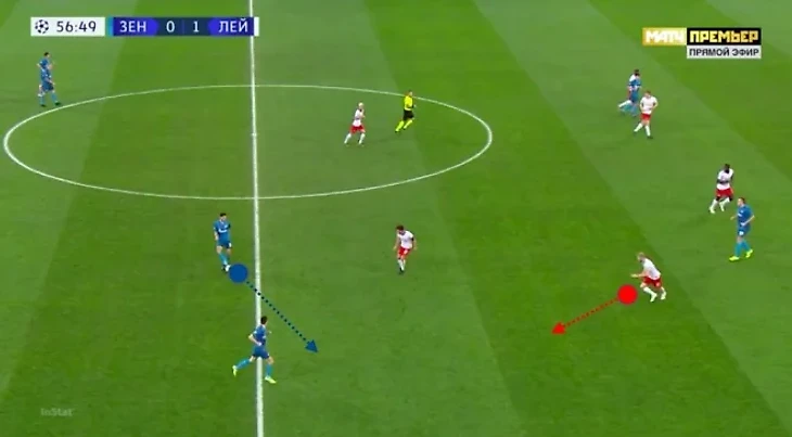 Среднее количество передач «Зенита» в каждом владении в этом сезоне — 4,5, в том числе в первых двух матчах Лиги Чемпионов. В первом матче против «РБ Лейпцига» петербуржцы в среднем делали три передачи за владение, в ответном еще меньше — 2.7.