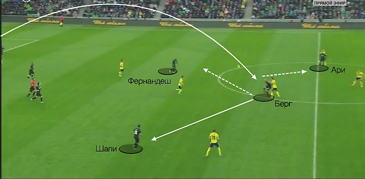 Фернандеш стал чаще уходить направо. Бывало, что и глубоко, образовывая треугольник с Петровым и Олссоном: