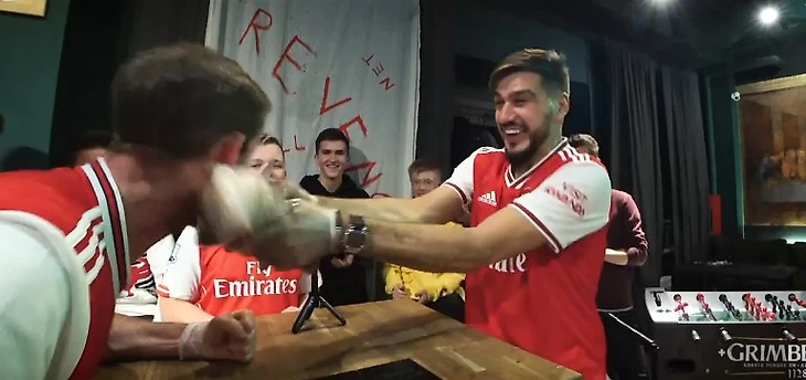 В концовке выпуска Жека и Алекс в футболках «Арсенала» завалились в бар, где сыграли в необычную игру. Савин задавал Глебу вопросы про «канониров» – если Алекс отвечал неверно – получал лещом по лицу. Если ответ был правильным, рыбой получал Жека. Все это происходило при толпе фанатов.